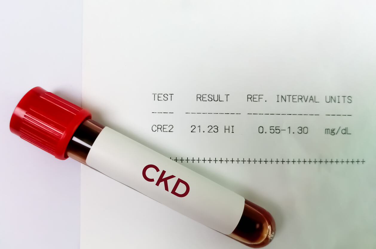 Blood sample isolated with Chronic Kidney disease or CKD, high Creatinine and BUN report.