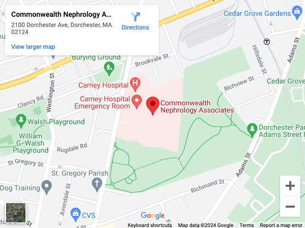 The nephrologists at Commonwealth Nephrology Associates are experts in all types of in-center and home dialysis. Our kidney specialists focus on treating both common and complex kidney conditions including chronic kidney disease, glomerulonephritis, hypertension, kidney stones, electrolyte abnormalities, and end-stage renal disease. For comprehensive kidney care visit us in Norfolk, Natick, Marlborough, South Weymouth, Dorchester, Norwood, and Attleboro, Massachusetts.